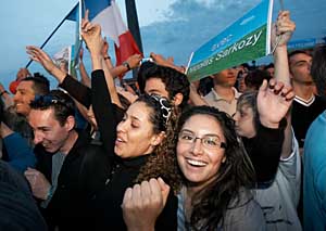 6日晚,在法國(guó)首都巴黎協(xié)和廣場(chǎng),人民運(yùn)動(dòng)聯(lián)盟主席薩科齊的支持者慶祝大選獲勝。新華社記者 徐金泉