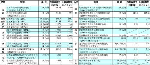 國(guó)際大宗商品期貨價(jià)格明細(xì)表