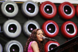 基斯在美國新澤西州東拉瑟福德舉行的“拯救地球”音樂會上演唱。新華社/法新