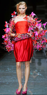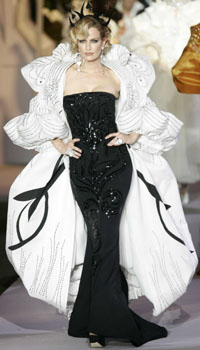 名設計師之所以有名,必有其不敗之處。例如,他們源源不竭、千奇百怪的創(chuàng)意與構(gòu)思有時令人目瞪口呆,有時令人贊不絕口。 7月2日時裝周第一天,世界頂級時裝品牌迪奧為慶祝品牌誕生60周年,在巴黎近郊的昔日皇宮——凡爾賽宮內(nèi)舉行了一場時尚派對,場面盛大,極盡奢華之能事。一批世界超模穿著令人眼花繚亂的華麗晚裝和上世紀40年代風格的西裝亮相,仿佛一個個美人兒從畫中走出。也難怪,這些服裝的創(chuàng)意本就來自達·芬奇、畢加索、米開朗基羅、莫奈、雷諾阿等大師的畫作,更何況它們出自迪奧的御用設計師——加利亞諾之手。舞臺背景音樂選擇了西班牙弗拉門戈舞曲,讓人憶起加利亞諾一半的西班牙血統(tǒng)。當加利亞諾身著華麗的傳統(tǒng)斗牛裝束現(xiàn)身,時裝秀現(xiàn)場氣氛達到高潮——這是他的風格,親自扮演最后一位讓人“驚艷”的模特。