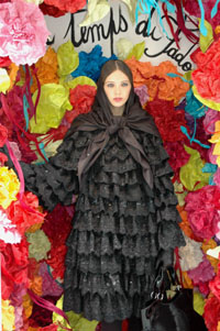 從服裝材質(zhì)和造型來看,絲綢和魚尾裙在凸顯女性魅力方面的功能讓其成為眾多設計師的設計重點,珍珠、亮片、蕾絲花邊、刺繡的分量也一如從前。不過,在服裝展示舞臺的選擇上,則充分體現(xiàn)了“五花八門”的特點——這也是服裝周的另一看點。 7月3日晚,來自芬蘭的巴黎時裝設計師賈絲明·桑塔寧在游弋在塞納河上的游船上舉行了秋冬時裝發(fā)布會。晚上9時許,陣雨過后的巴黎露出了晴朗的藍天。歡快的音樂聲中,游船駛離河岸,緩緩前行。一陣閃光燈亮過,模特們在游船上層臨時鋪設的露天T型臺上開始了展示。職業(yè)裝、小禮服、晚禮服相繼“登場”,塞納河岸與橋頭的游人樂得當起了臨時觀眾,免費觀看這場精彩的時裝秀。不過,模特們可吃了不少“苦頭”,她們穿著尖細的高跟鞋邁著臺步,還得隨時防止因游船的運動而傾斜或跌倒。 7月4日,高級時裝設計師弗蘭克·索爾比埃向觀眾展示了其充滿懷舊色彩的設計。一個長方形庭院的中央用地毯鋪出一個長條舞臺,一個穿輪滑鞋的女精靈,一個捧書細閱的男芭蕾舞者,一個雜耍演員,一個乖巧女童,四個人在舞臺上隨性演出。舞臺兩旁搭起了一座座白色小木屋,仿佛幀幀精美像框,框住了一個個精美如瓷娃娃的模特。