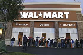 | 圖為美國(guó)芝加哥市民排隊(duì)進(jìn)入沃爾瑪購(gòu)物。本報(bào)資料照片 | 美國(guó)《財(cái)富》雜志7月23日一期將刊登2007年全球500強(qiáng)排行榜,根據(jù)其提前公布的排行榜榜單,盡管較去年有所變化,沃爾瑪、?松梨诘热蛑髽I(yè)均仍高居各榜單榜首位置,中國(guó)國(guó)家電網(wǎng)公司、中石油、中石化等眾多中國(guó)企業(yè)也位于各排行榜前列。
