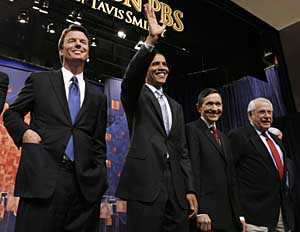 過去幾十年間,歷屆美國(guó)總統(tǒng)競(jìng)選總少不了尋求連任的現(xiàn)任總統(tǒng)或希望“扶正”的副總統(tǒng),但明年的總統(tǒng)競(jìng)選將成為自1928年以來美國(guó)最具“開放性”的一次選舉,因?yàn)楝F(xiàn)任總統(tǒng)布什已連任兩屆,法律規(guī)定不能再次競(jìng)選,而副總統(tǒng)切尼多次表示,他無意參加2008年的總統(tǒng)角逐。 正因?yàn)槿绱,眾多欲角逐白宮寶座的美國(guó)政要早早就表明了參選意向,掀起激烈的籌款大戰(zhàn)。在很大程度上,候選人所獲得的競(jìng)選資金越多,成功的幾率就越高。