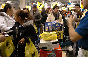 | 美國購物者在紐約市皇后區(qū)的一家連鎖店內(nèi)搶購電器。美國的借貸透支消費(fèi)文化是次貸危機(jī)發(fā)生的一個深層次原因。本報資料照片 | 次貸本身風(fēng)險度高