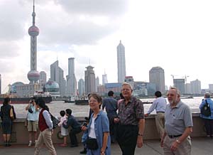 中國的和平崛起引起全球矚目,圖為來自加拿大的游客在中國上海外灘參觀。本報資料圖片 | 本報日內(nèi)瓦電