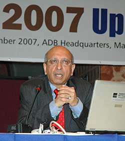 | 17日,亞洲開發(fā)銀行首席經(jīng)濟(jì)師伊夫扎勒·阿里在菲律賓首都馬尼拉介紹2007年亞洲經(jīng)濟(jì)發(fā)展前景。新華社記者 劉華