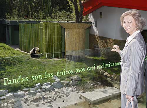 19日,西班牙王后索菲婭在首都馬德里的動(dòng)物園觀賞中國(guó)大熊貓。今年6月西班牙國(guó)王卡洛斯一世訪華時(shí),兩國(guó)政府確定中國(guó)與西班牙大熊貓保護(hù)研究國(guó)際合作項(xiàng)目啟動(dòng)。本月8日,雄性大熊貓“冰星”和雌性大熊貓“花嘴巴”抵達(dá)馬德里,開始在馬德里動(dòng)物園為期10年的旅居生活。