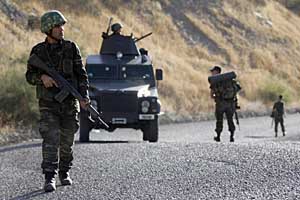 | 17日,幾名土耳其士兵在舍爾納克省巡邏。15日,土耳其政府向議會(huì)提交動(dòng)議,要求議會(huì)批準(zhǔn)派安全部隊(duì)越境進(jìn)入伊拉克境內(nèi)打擊庫(kù)爾德工人黨武裝。新華社/法新 | 近期國(guó)際油價(jià)接連刷新歷史最高紀(jì)錄,在美國(guó)次級(jí)抵押貸款危機(jī)已對(duì)全球投資者信心造成嚴(yán)重沖擊的大背景下,油價(jià)屢創(chuàng)新高及其對(duì)全球經(jīng)濟(jì)帶來(lái)的挑戰(zhàn)尤其值得關(guān)注!