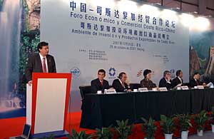 | 25日,中國(guó)—哥斯達(dá)黎加經(jīng)貿(mào)合作論壇暨哥斯達(dá)黎加投資環(huán)境和出口商品說(shuō)明會(huì)在北京舉行。本報(bào)記者 文婧