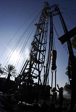 | 圖為美國(guó)洛杉磯的石油鉆井臺(tái)。本報(bào)資料照片 | 近來,國(guó)際市場(chǎng)原油期貨價(jià)格大幅上漲,屢創(chuàng)新高。6日,紐約商品交易所12月份交貨的輕質(zhì)原油期貨價(jià)格突破每桶97美元,創(chuàng)下97.10美元的歷史最高盤中價(jià)和96.70美元的歷史最高收盤價(jià),距100美元大關(guān)僅有一步之遙。 市場(chǎng)分析人士指出,全球原油需求不斷增長(zhǎng)、市場(chǎng)投機(jī)活動(dòng)旺盛、美元持續(xù)貶值及中東地區(qū)地緣政治局勢(shì)緊張等是推動(dòng)油價(jià)大幅飆升的四大主要因素。