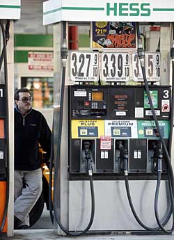 | 7日,一名男子在美國紐約的一個(gè)加油站加油。當(dāng)日紐約原油期價(jià)盤中創(chuàng)98.62美元?dú)v史新高。新華社/路透 | 投機(jī)吹脹油價(jià)泡沫