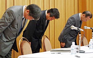 | 25日,三洋電機公司總裁佐野精一郎(中)與公司其他管理人員出席在日本大阪舉行的新聞發(fā)布會。新華社/法新 | 東京證券交易所25日說,三洋電機公司誤報6年財務(wù)數(shù)據(jù),將可能面臨摘牌危險。三洋公司在連續(xù)3年虧損后剛剛出現(xiàn)盈利,此次遭遇摘牌危機,三洋將可能被迫繼續(xù)其重組進程。 東京證交所當天在自己網(wǎng)站上發(fā)表聲明說,已將三洋公司股票移至監(jiān)控板塊,證交所計劃展開審查,決定是否將其摘牌。聲明說:“三洋公司修改業(yè)績報表數(shù)據(jù)的做法非同尋常。證交所將展開進一步審查……三洋公司可能被摘牌! 日本信近資產(chǎn)管理公司首席基金管理人藤遠直紀(音譯)說,三洋如果遭摘牌,將被迫繼續(xù)重組。 2006年,高盛公司、大和證券和住友三井金融集團曾聯(lián)合向三洋公司注資26億美元,將三洋公司拖出破產(chǎn)邊緣。同時,身為創(chuàng)業(yè)者的三洋公司原董事長井植敏雅和父親井植敏辭職,三洋公司開始金融機構(gòu)主導(dǎo)下的重組與再建。 為探索新的發(fā)展方向,三洋公司先后出售平板顯示器合資企業(yè),以及一家在泰國的冰箱制造企業(yè),同時投巨資生產(chǎn)可充電電池。 三洋公司總裁佐野精一郎25日承諾,不會再犯同樣錯誤。佐野精一郎當天在新聞發(fā)布會上說:“我們非常重視修改業(yè)績報表一事,三洋公司將建立一套體系,防止這種錯誤再次發(fā)生! 三洋公司表示,修改業(yè)績數(shù)據(jù)是因為低估了半導(dǎo)體、液晶顯示器部門的虧損。 總部位于大阪的三洋公司25日說,自2001財政年度至2006財政年度,公司凈虧損4845億日元(約合42.4億美元),高于先前公布的4786億日元(約合41.5億美元)。 三洋公司同時宣布,將削減行政人員薪水,停止向董事會成員發(fā)放退休金。三洋決定,扣發(fā)16名前董事會成員與13名現(xiàn)董事會成員的退休金;將公司總裁和執(zhí)行副總裁6個月工資削減60%,其他一些高級職員也將被削減工資。 日本證券交易監(jiān)視委員會建議對三洋公司處以830萬日元(約合7.265萬美元)罰款。三洋公司股價25日下跌3.6%。 在連續(xù)3年虧損后,三洋公司2007財年上半年度剛剛出現(xiàn)盈利。 (新華社專稿)
