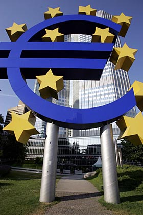 | 圖為歐洲央行總部前的歐元符號模型。本報資料照片 | 主權(quán)基金利大于弊