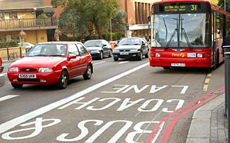 | 圖為在英國倫敦市中心,一輛巴士和其他汽車各行其道。新華社發(fā) | 首爾:公交車開在路中央