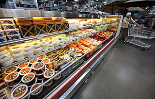 | 一名顧客在美國加利福尼亞州的科斯托克倉儲式超市購物。新華社/法新 | 近來,國際油價連日下跌,美元匯率顯著走強,美股亦呈上升態(tài)勢。一些分析人士提出,這些利好消息或許意味著美國次貸危機已經見頂,美國經濟回暖在即。然而,18日紐約股市三大股指大幅下挫恰如當頭棒喝,讓投資者認識到美國金融市場仍然危機四伏,一旦受外界因素催化,新的金融危機就可能發(fā)生,而下半年美國整體經濟仍面臨下行風險。