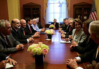 | 18日,在美國(guó)首都華盛頓,美國(guó)財(cái)政部長(zhǎng)保爾森(左三)、美聯(lián)儲(chǔ)主席伯南克(左二)與美國(guó)國(guó)會(huì)領(lǐng)導(dǎo)人舉行閉門會(huì)談。新華社/路透 | 華爾街日前的“金融海嘯”讓美國(guó)金融體系重新洗牌,也迫使美國(guó)政府迅速推出新的救援計(jì)劃,擬動(dòng)用7000億美元的資金購(gòu)買金融機(jī)構(gòu)不良資產(chǎn),這也是上世紀(jì)30年代經(jīng)濟(jì)大蕭條以來(lái)美國(guó)政府最龐大的救援計(jì)劃。 美國(guó)政府此舉也是迫不得已。美國(guó)素來(lái)標(biāo)榜自己是自由市場(chǎng)經(jīng)濟(jì),但隨著次貸危機(jī)向縱深發(fā)展,房利美、房地美、雷曼兄弟、美國(guó)國(guó)際集團(tuán)等眾多金融巨頭倒下,市場(chǎng)信心瀕于崩潰。 據(jù)美國(guó)官員透露,美國(guó)財(cái)政部過(guò)去數(shù)周一直在研究這項(xiàng)計(jì)劃,但因顧慮可能遭到外界強(qiáng)烈反對(duì)一直秘而不宣;但由于近來(lái)華爾街局勢(shì)急轉(zhuǎn)直下,為防范危機(jī)進(jìn)一步蔓延,政府已別無(wú)選擇。美國(guó)總統(tǒng)布什解釋說(shuō),他最初也希望讓市場(chǎng)發(fā)揮作用,但“當(dāng)認(rèn)識(shí)到問(wèn)題正變得多么嚴(yán)重時(shí)”,他決定必須采取這一措施,否則美國(guó)將為此付出更大代價(jià)。 在公布金融救援計(jì)劃前,美國(guó)財(cái)政部長(zhǎng)保爾森、美國(guó)聯(lián)邦儲(chǔ)備委員會(huì)主席伯南克和布什進(jìn)行了緊急磋商;保爾森等官員隨后又拜會(huì)多位資深議員,爭(zhēng)取到了他們的支持。 保爾森的計(jì)劃核心是為華爾街“止血”——政府投入7000億美元,低價(jià)購(gòu)買金融機(jī)構(gòu)的住房和商業(yè)抵押貸款等不良資產(chǎn),待市場(chǎng)初步穩(wěn)定后,政府再將這些資產(chǎn)出售給市場(chǎng)。保爾森說(shuō),這些不良資產(chǎn)是造成目前金融危機(jī)的癥結(jié)所在。 曾參與1979年克萊斯勒公司救助計(jì)劃的美國(guó)前政府高級(jí)官員羅格·阿爾特曼也表示,盡管目前金融環(huán)境艱險(xiǎn),但“經(jīng)過(guò)這一過(guò)渡期后,政府最終完全有可能獲得償還”。 金融救援計(jì)劃極大地振奮了投資者的信心,也推動(dòng)全球股市大幅反彈。但大量財(cái)政開(kāi)支,無(wú)疑會(huì)使美國(guó)下屆政府背上沉重的債務(wù)包袱,加重美國(guó)的財(cái)政困難。美國(guó)參議員理查德·謝爾比認(rèn)為,政府救市總耗資可能達(dá)到1萬(wàn)億美元。一旦政府出售資產(chǎn)不能盈利,巨額虧損將是納稅人買單?▋(nèi)基-梅隆大學(xué)政治經(jīng)濟(jì)學(xué)學(xué)者艾倫·梅爾策認(rèn)為,當(dāng)前的金融危機(jī)并非納稅人的問(wèn)題,而保爾森提出的救援計(jì)劃要耗費(fèi)數(shù)千億美元資金,“這是最糟糕的社會(huì)民主”。 一些國(guó)會(huì)議員則認(rèn)為,美國(guó)政府現(xiàn)在是為華爾街大亨買單,卻對(duì)普通美國(guó)人的損失視而不見(jiàn),這種忽視“道德風(fēng)險(xiǎn)”的行為將加劇市場(chǎng)的投機(jī)風(fēng)險(xiǎn),為新的危機(jī)埋下隱患。眾議院金融服務(wù)業(yè)委員會(huì)主席巴尼·弗蘭克說(shuō),該計(jì)劃只讓一些金融從業(yè)者直接受益,“我們應(yīng)該討論一下那些非私有領(lǐng)域的民眾的受益情況”。 次貸危機(jī)爆發(fā)一年來(lái),美國(guó)政府的數(shù)次救市行為未能根本扭轉(zhuǎn)市場(chǎng)走勢(shì),而今后的救援計(jì)劃能否見(jiàn)效還有待觀察,美國(guó)經(jīng)濟(jì)仍存在很大不確定性。不過(guò),從積極角度看,如果美國(guó)政府隨后舉措得當(dāng),華爾街也有可能在劇烈動(dòng)蕩中迎來(lái)“轉(zhuǎn)折點(diǎn)”。 |