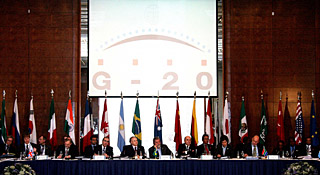 攝 | 二十國集團財政部長和中央銀行行長2008年年會8日在巴西圣保羅開幕,與會代表紛紛呼吁國際社會協(xié)調(diào)一致,共同應(yīng)對國際金融危機。 由于這次年會是閉門會議,外界對于會議所討論的議題猜測頗多。一些代表在會場外透露,在全球范圍內(nèi)降低利率以減少金融危機帶來的損失,是年會的一個重要議題。