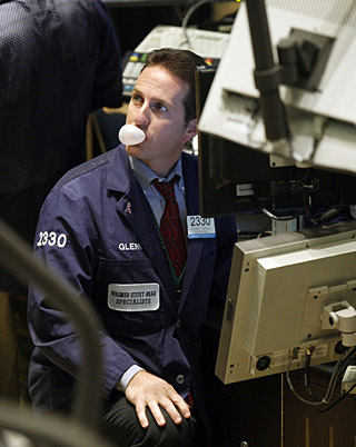 | 10日,美國紐約證券交易所內(nèi)一名交易員吹泡泡糖。當(dāng)日,由于投資者對經(jīng)濟(jì)疲軟導(dǎo)致公司盈利下滑的擔(dān)憂抵消了中國宣布巨額經(jīng)濟(jì)刺激計劃的利好影響,紐約股市道瓊斯、標(biāo)準(zhǔn)普爾和納斯達(dá)克三大股指均小幅下跌。新華社/路透 | 中國政府近日出臺進(jìn)一步擴(kuò)大內(nèi)需、促進(jìn)經(jīng)濟(jì)增長的措施,以抵御世界金融危機(jī)對中國的不利影響。措施出臺后,國際社會評價積極,市場反應(yīng)激烈。