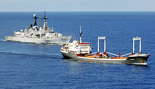 海盜活動頻繁已迫使國際社會在亞丁灣附近海域加強巡邏。印度海軍19日說,在附近海域巡邏的“塔巴”號護衛(wèi)艦18日擊毀一艘類似“母船”的海盜船。 “塔巴”號當天巡邏時發(fā)現(xiàn)這艘海盜船,隨后要求停船檢查。這艘海盜船尾部拖著兩艘快艇,船上載有食物、柴油和水,看起來類似一艘“母船”。 海軍官員說,海盜在輪船甲板上威脅用火箭筒襲擊軍艦,隨后便向軍艦開槍射擊!八汀碧栍枰曰負,引發(fā)爆炸和大火。海盜“母船”在爆炸中被毀。 |
