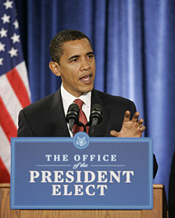 美國當(dāng)選總統(tǒng)奧巴馬。新華社/伽瑪 | 美國當(dāng)選總統(tǒng)貝拉克·奧巴馬6日公布經(jīng)濟(jì)復(fù)蘇計(jì)劃五大內(nèi)容,即政府節(jié)能、啟動50多年來國內(nèi)最大規(guī);A(chǔ)設(shè)施建設(shè)、展開史上最大規(guī)模學(xué)校硬件升級活動、改進(jìn)醫(yī)療狀況和普及寬帶網(wǎng)。 他希望這項(xiàng)計(jì)劃能化解當(dāng)下經(jīng)濟(jì)危機(jī)、提高就業(yè)率,同時增強(qiáng)美國國際競爭力。