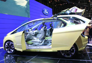 第79屆日內(nèi)瓦國(guó)際汽車(chē)展,參展的世界各大汽車(chē)制造廠商幾乎都帶來(lái)了各自的概念車(chē),其特點(diǎn)一是綠色環(huán)保概念車(chē)多;二是接近定型的概念車(chē)多。 受世界經(jīng)濟(jì)和金融危機(jī)的沖擊和影響,本屆車(chē)展突出節(jié)能、環(huán)保車(chē)型,參展的概念車(chē)也不例外。 美國(guó)福特IOSIS
