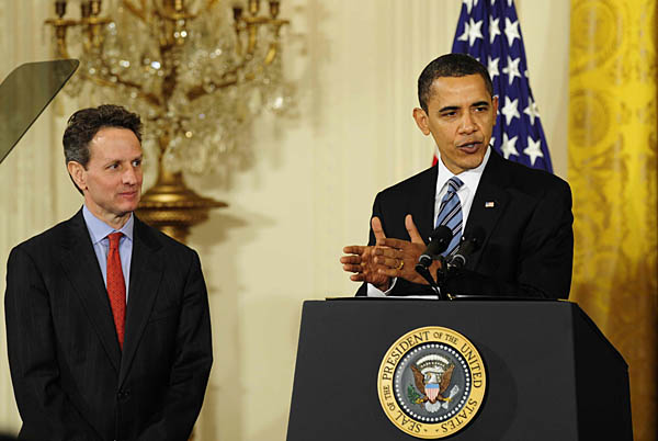 16日,美國總統(tǒng)奧巴馬(右)及美國財長蓋特納在華盛頓白宮會見中小企業(yè)代表。當(dāng)日,美國政府公布一項計劃,旨在通過采取一系列促進(jìn)信貸等措施,幫助美國小企業(yè)走出目前的困境。