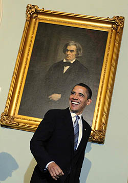 | 25日,美國總統(tǒng)奧巴馬抵達(dá)華盛頓國會山,準(zhǔn)備與參議院討論2009財政年度預(yù)算案。新華社記者 張巖