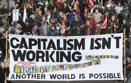 28日,超過150個(gè)社會(huì)團(tuán)體在倫敦聯(lián)合舉行大規(guī)模游行,呼吁即將在倫敦舉行的二十國(guó)集團(tuán)倫敦金融峰會(huì)著重應(yīng)對(duì)金融危機(jī)對(duì)普通人造成的影響,并表達(dá)對(duì)貧困、就業(yè)和氣候現(xiàn)狀的不滿。新華社/路透 | 距二十國(guó)集團(tuán)(G20)領(lǐng)導(dǎo)人會(huì)議召開尚有幾天,一份由東道國(guó)英國(guó)起草、涉及2萬億美元全球性財(cái)政刺激方案的會(huì)議公報(bào)草案由德國(guó)媒體提前泄露。 不少人懷疑,這可能是對(duì)英國(guó)主張持反對(duì)意見的德國(guó)政府內(nèi)部人士所為。