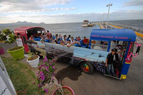 8日,在尼加拉瓜首都馬那瓜,當?shù)鼐用裨隈R那瓜湖畔乘坐觀光車。尼加拉瓜已經全面進入“圣周”假期。所謂“圣周”就是西方的“復活節(jié)”。(新華社發(fā))