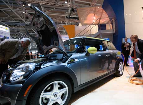 20日,在德國(guó)漢諾威工業(yè)展上,一輛電動(dòng)環(huán)保汽車吸引了眾多參觀者。太陽(yáng)能、風(fēng)能等環(huán)保能源在本屆漢諾威工業(yè)展上頗受青睞!