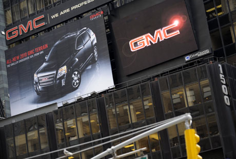 在美國(guó)紐約曼哈頓拍攝的通用公司的汽車廣告。新華社/法新 |