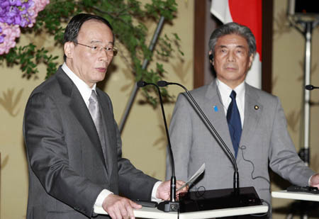 第二次中日經(jīng)濟(jì)高層對話7日在日本東京閉幕。中國國務(wù)院副總理王岐山和日本外務(wù)大臣中曾根弘文在對話結(jié)束后共同會(huì)見了記者。雙方一致表示,要牢牢把握中日戰(zhàn)略互惠關(guān)系的大方向,加強(qiáng)交流,增進(jìn)共識,共同推動(dòng)兩國經(jīng)貿(mào)合作不斷向前發(fā)展。