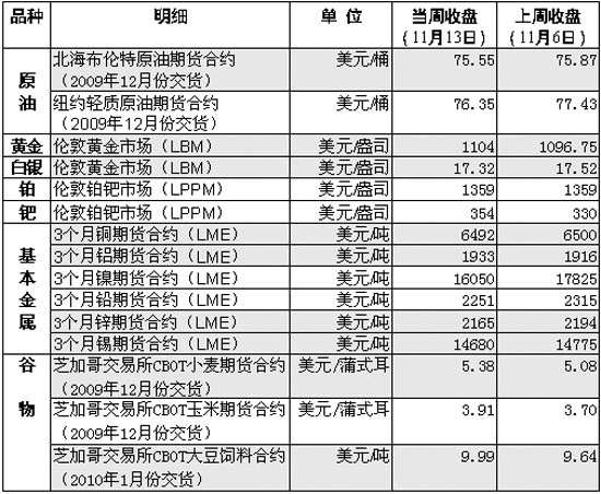 當(dāng)周國(guó)際金價(jià)再次刷新歷史紀(jì)錄。倫敦市場(chǎng)金價(jià)12日創(chuàng)下每盎司1123.38美元的歷史新高。紐約市場(chǎng)黃金期貨12月合約11日盤中觸及1119.10美元的歷史新高,并在次日隔夜電子交易中一度上漲至1123.40美元的紀(jì)錄新高。 分析人士指出,美國(guó)經(jīng)濟(jì)低迷造成美元疲軟,衡量美元對(duì)西方主要貨幣比價(jià)的美元指數(shù)在11日夜間曾一度跌至74.855的15個(gè)月來新低,美元匯率下跌提升了投資者買入黃金保值的需求,因此金價(jià)連創(chuàng)新高。只要美聯(lián)儲(chǔ)加息未進(jìn)入倒計(jì)時(shí),黃金有理由在利好基本面的支撐下繼續(xù)維持高位,并仍有上行機(jī)會(huì)。但需要注意的是,鑒于近期金價(jià)上漲主要由大量投機(jī)買盤而非實(shí)物需求推動(dòng),因此金價(jià)有可能出現(xiàn)短期回調(diào)。 受美元匯率波動(dòng)以及投資者對(duì)美國(guó)能源需求恢復(fù)前景表示擔(dān)憂等因素影響,當(dāng)周國(guó)際油價(jià)呈震蕩走勢(shì)。分析人士認(rèn)為,目前紐約市場(chǎng)油價(jià)處于每桶76美元至82美元震蕩區(qū)間的下部,不排除向下突破的可能。埃克森美孚石油公司首席執(zhí)行官13日也指出,當(dāng)前油價(jià)中至少有20美元至25美元的溢價(jià)是由美元貶值造成。 庫(kù)存減少推高了鋁價(jià),雖然倫敦金屬交易所(LME)的鋁庫(kù)存仍處于高位,但已比頂峰時(shí)下降了近10萬(wàn)噸,反映出市場(chǎng)對(duì)鋁的需求增多。LME其他基本金屬期貨價(jià)格普遍下跌,其中鎳價(jià)跌幅最深,LME鎳庫(kù)存12日升至13.17萬(wàn)噸,為1995年以來最高。 埃及國(guó)家小麥采購(gòu)機(jī)構(gòu)——埃及通用商品供應(yīng)總局12日買入了29.5萬(wàn)噸俄羅斯小麥。在基本面利空的情況下,芝加哥市場(chǎng)小麥價(jià)格依然上漲,上漲動(dòng)力來源于技術(shù)性基金買盤。另外,美國(guó)農(nóng)業(yè)部公布的農(nóng)作物生長(zhǎng)進(jìn)度和農(nóng)產(chǎn)品月度供需報(bào)告等,都為玉米價(jià)格走高提供了支撐。