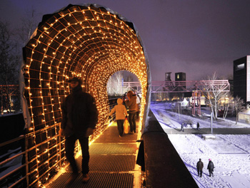 德國(guó)魯爾工業(yè)區(qū)變身“歐洲文化首都”。1月9日,在德國(guó)魯爾工業(yè)區(qū)埃森市,人們?cè)?010年埃森“歐洲文化首都”活動(dòng)開(kāi)幕式上參觀工業(yè)區(qū)。新華社/法新 |