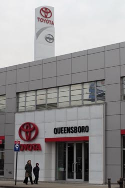 兩名行人從美國(guó)紐約的一家豐田汽車(chē)專賣(mài)店門(mén)前走過(guò)。新華社記者 劉欣