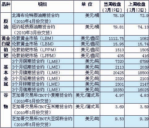 當(dāng)周,受美元走軟和市場供應(yīng)趨緊的影響,國際油價創(chuàng)出五周來新高,并引領(lǐng)大宗商品普漲。然而,在美聯(lián)儲18日宣布將聯(lián)邦貼現(xiàn)率從0.5%上調(diào)至0.75%后,多數(shù)大宗商品漲幅回落。 當(dāng)周國際油價在多重利好刺激下,四個交易日連續(xù)上漲,19日更是逼近每桶80美元,刷新五周來新高。隨著投資者情緒轉(zhuǎn)變,美元沖高回落,也為以美元計價的原油期貨價格提供上行動力。 此外,伊朗總統(tǒng)周中警告一些大國不要試圖對伊實施新制裁,這一表態(tài)令投資者對中東地區(qū)原油供應(yīng)可能受影響的擔(dān)憂加劇,也幫助推動油價上行。法國石油工人罷工令投資者擔(dān)憂美國未來汽油供應(yīng)可能受影響。 在油價攀升的帶動下,當(dāng)周國際金價漲多跌少,盤中價格更是觸及四周高點,不過消息面上國際貨幣基金組織(IMF)宣布將在公開市場出售黃金在一定程度上打壓了金價。 當(dāng)周基本金屬價格供應(yīng)稍緊的背景下穩(wěn)步上漲。不過巴克萊資本的分析報告顯示,“市場基本面仍在向供過于需的方向發(fā)展!