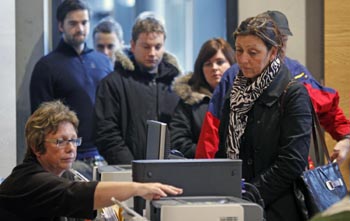 3月6日,在冰島雷克雅未克的一個(gè)投票站,人們排隊(duì)等待投票。冰島官方初步統(tǒng)計(jì)數(shù)據(jù)顯示,6日舉行的全民公決否決了賠償英國(guó)和荷蘭儲(chǔ)戶損失的議案。新華社/路透 |