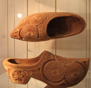 木鞋、風(fēng)車、郁金香,被并稱為荷蘭“三寶”。如今,多數(shù)荷蘭人早已不再穿著木鞋,它更多的成為游客必買的紀(jì)念品以及當(dāng)?shù)厝俗哂H訪友的禮品。但是在阿姆斯特丹北部10多公里外的小城贊丹的郊區(qū),還有一個(gè)小小的木鞋博物館,讓人們品味這荷蘭歷史與文化精雕細(xì)琢而出的精品。 在這家博物館門口,放著一只巨大的木鞋。據(jù)悉,這只長約三米的木鞋由一整塊木頭制作而成,鞋面漆成黃色,并飾有紅色的條紋,號稱是世界上最大的木鞋。而走進(jìn)博物館,一條十余米長的甬道一側(cè),則陳列著上百雙古老的木鞋。 “現(xiàn)存最古老的木鞋是大約800年前制作的,那是人們在鹿特丹附近的地下意外挖掘出來的!毙厍霸粋(gè)木鞋飾物的博物館管理員馬塞爾·凱普敦對記者說,“直到上個(gè)世紀(jì)60、70年代,木鞋還在荷蘭人的日常生活中占有重要地位,但可惜如今,它更多的只是陳列品與紀(jì)念品了! 由于木質(zhì)難以長期保存,加上在幾百年前人們總是習(xí)慣于將舊木鞋當(dāng)作木柴燒掉,因此很難追溯木鞋起源的確切年代。但是木鞋發(fā)展的起因卻很清楚,那正是因?yàn)楹商m獨(dú)特的地理地形——全國國土面積約1/4低于海平面,人們在低洼田地里耕作以及堆壘堤壩等農(nóng)業(yè)工業(yè)生產(chǎn)生活中,為了保護(hù)腳特別是腳趾而設(shè)計(jì)制作出這種款式獨(dú)特的木鞋。 “木鞋最大的優(yōu)點(diǎn)是安全,可以非常好地保護(hù)你的腳,”一邊說,穿著一雙藍(lán)色木鞋的凱普敦一邊抬起左腳狠狠地向右腳踩下去示意給記者看“特別是腳趾這樣容易受傷的地方!案鶕(jù)不同的用途,荷蘭人對木鞋做了很多不同的設(shè)計(jì)和改進(jìn)。比如,在傳統(tǒng)的木鞋底下增加較大面積的橡膠墊,能夠幫助人們更好地在泥濘地里干活;給木鞋配上高高的橡膠套,則能夠在草叢密集的地方保護(hù)到腳和腿等更多的地方! 實(shí)際上,荷蘭的木鞋分類極其之多。根據(jù)工作用途劃分有鋪石工木鞋、堤壩工木鞋、泥炭工木鞋、翻土工木鞋、漁夫木鞋、冰上木鞋等;而根據(jù)生活用途劃分還有專門的禮拜鞋、周末木鞋、新娘木鞋等等。 凱普敦介紹說:“制作木鞋的最佳材料是楊木,當(dāng)然還有柳木。不過柳木相對較少,而且價(jià)格更貴,所以日常用得最多的還是楊木。”博物館內(nèi)有一小塊區(qū)域?qū)iT展示木鞋制作工藝。通常,人們需要將樹干根據(jù)其外形切成木樁,而后根據(jù)具體鞋的大小再切成木塊。隨后,匠人利用斧子以及條刀切割出木鞋的外形,再用匙鉆等工具挖出鞋的內(nèi)部空間。之后,還需要經(jīng)歷風(fēng)干、打磨以及涂繪等工序。一雙木鞋的誕生,大約需要經(jīng)過總共25道工序。 指著墻上的一副照片,凱普敦說:“你看,這是幾十年前人們舉行傳統(tǒng)的冰上婚禮的照片,人人都穿著木鞋!睔v史上,木鞋曾經(jīng)在荷蘭人的戀情中占有獨(dú)特的重要地位。“如果一個(gè)小伙子向心上人贈送的木鞋被接受了,那就說明姑娘也愛上了他!辈┪镳^里就展出了許多這樣精致的新娘木鞋,它們鑲有小玫瑰、星星、魔紐等圖案,表達(dá)著人們對愛情的美好期待。 “很多人都以為木鞋很笨重,其實(shí)它很輕便,不信你試試!”凱普敦脫下腳上的那雙漂亮的藍(lán)色木鞋,讓記者穿上,果然很輕,甚至和記者原先穿著的那雙運(yùn)動鞋分量相當(dāng),抬腳邁足,幾無不便!暗,你穿上木鞋不能像平常那樣走路,而必須將腳勾起來往前邁,腳掌先落地,否則,堅(jiān)硬的木鞋會傷到你的腳背和腳踝! “畢竟,現(xiàn)在不是以前,”凱普敦指著一雙被涂繪成如今標(biāo)準(zhǔn)的系帶皮鞋模樣的木鞋說:“即便是那些喜歡木鞋的人,也希望能將木鞋做得像皮鞋一樣,”突然之間,這位頭發(fā)灰白的長者輕嘆一聲,“他們做到了。”而他眼中,閃過一絲淡淡的憂郁。 |