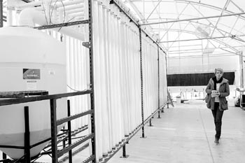 美國大力發(fā)展海藻生物能源技術。2月1日,在美國肯塔基州列克星敦的肯塔基州大學應用能源研究中心,一名記者從海藻種子反應器旁走過。新華社記者 劉欣
