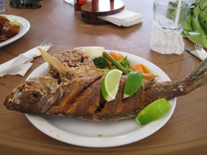 夕陽余暉中的羅阿坦島顯得那么安詳靜謐,走在溫潤涼爽的加勒比海邊,任憑略帶些咸味的清涼海風(fēng)將心中的愁緒一掃而空。疲倦了,就坐在海邊的茶棚中,點上一份當(dāng)?shù)靥厣恕翱救~”,配上加勒比獨有的椰絲沙拉醬和紅豆米飯,別有一番滋味。