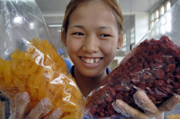 作為中國(guó)-東盟自由貿(mào)易區(qū)的投資合作平臺(tái),中國(guó)-東盟經(jīng)濟(jì)園區(qū)已成為中國(guó)和東盟 客商的投資熱土。圖為森景園食品有限公司的工人在展示綠色環(huán)保食品。本報(bào)記者