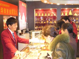 “我們作為北京市第一家與上海黃金交易所聯(lián)動(dòng)的商場(chǎng),按當(dāng)天金交所即時(shí)牌價(jià)買(mǎi)賣(mài)金豬賀歲金條,此舉一推出立即吸引了許多消費(fèi)者爭(zhēng)相購(gòu)買(mǎi)。為了防止搶購(gòu)風(fēng)潮,我們采取提前放號(hào)、限量發(fā)售的方式,結(jié)果很快被人爭(zhēng)搶一空,許多外地人還打電話預(yù)約買(mǎi)號(hào)。”北京國(guó)華商場(chǎng)副總經(jīng)理周香蕊說(shuō)。