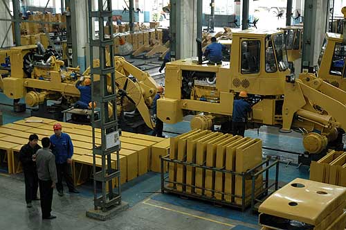 19日,柳工集團(tuán)的工人們正在緊張地組裝機(jī)器。近年來,柳工集團(tuán)通過技術(shù)、管理、制度等方面的創(chuàng)新,已成為我國最大的輪式裝載機(jī)生產(chǎn)基地。2006年,柳工集團(tuán)裝載機(jī)產(chǎn)銷量雙雙突破了兩萬臺(tái)“大關(guān)”,銷售收入走上了80億元新臺(tái)階,產(chǎn)品銷往60多個(gè)國家和地區(qū),企業(yè)坐上了世界輪式裝載機(jī)銷售的“第二把交椅”,確立了我國在國際市場裝備制造業(yè)的“話語權(quán)”。 |