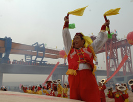 4月22日,東起陜西華陰新華山站,西至西安臨潼新站,全長(zhǎng)79.732公里的鄭州至西安鐵路客運(yùn)專線渭河特大橋正式開始架梁。鄭州至西安鐵路專線是我國(guó)實(shí)施西部大開發(fā)戰(zhàn)略的一項(xiàng)標(biāo)志性工程。本報(bào)記者:焦衛(wèi)平