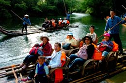 旅客在武夷山九曲溪乘坐竹筏。 本報(bào)記者:張國俊