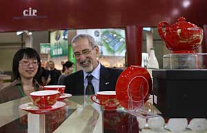俄羅斯參觀者在觀看中國瓷器。本報記者 魯金博 攝