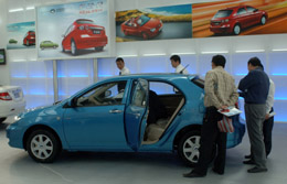 5月份西安車市呈現(xiàn)出購銷兩旺的態(tài)勢,汽車經(jīng)銷商也紛紛推出各種促銷活動(dòng),迎接購車熱潮。圖為西安市民在“2007西安春季車展”上看車。本報(bào)記者:丁海濤 攝