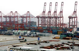 統(tǒng)計數(shù)字表明,2006年長三角地區(qū)港口貨物吞吐量完成22.09億噸,比上年增長15.8%,占全國的比重達39.4%,集裝箱吞吐量3348.2萬標箱,同比增長25.4%,占全國的比重達36%。其中上海港貨物吞吐量5.37億噸,同比增長21.3%,繼2005年躍居世界首位后繼續(xù)保持世界第一;浙江省港口貨物吞吐量完成8.21億噸,集裝箱吞吐量752萬標箱,分別增長17.1%、35.5%;江蘇省港口貨物和集裝箱吞吐量分別達到8.5億噸和425.1萬標箱,同比分別增長12.5%、38.9%。