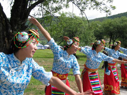 | 香格里拉載歌載舞的少女。 | 中國(guó)內(nèi)地第一個(gè)國(guó)家公園——香格里拉普達(dá)措國(guó)家公園,采取“國(guó)家所有、政府授權(quán)、特許經(jīng)營(yíng)、社會(huì)監(jiān)督”的國(guó)際通行的基本管理模式與國(guó)際接軌,依法管理運(yùn)行,使資源利用更為有效,避免多重管理,減少運(yùn)行成本。試運(yùn)行10多個(gè)月的普達(dá)措國(guó)家公園已充分顯現(xiàn)出生態(tài)保護(hù)與旅游發(fā)展的良性互動(dòng)。