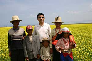 青海湖畔油菜花盛開了,倒淌河鎮(zhèn)的藏族牧民官卻加一家人從清晨就開始了一天的忙活,但不是忙活傳統(tǒng)的農(nóng)牧活,而是全家人牽著漂亮的白牦牛和裝扮一新的棗紅馬,在湖畔自家的油菜地旁扎好帳篷,等待游客的到來。 他家的價目表很簡單:進入油菜花地照相一人一次收1元,騎牦牛或騎馬照相一人一次收2元,騎馬一圈收5元。一個月下來,少說也有千八百元的進賬了。官卻加告訴記者,這幾年,每年這個時候他們都經(jīng)營這項“旅游”生意。“(環(huán)湖賽)好啊,外面的人來了,我的客人就多了,很高興!彼媸菦]有想到,就連自家的牛羊也能當模特,掙錢。 自開辦環(huán)湖賽以后,環(huán)湖地區(qū)很多官卻加這樣的人家都萌生出強烈的旅游致富意識。游客漫步在風光旖旎的湖邊,不時遇到藏族牧民會熱情地邀請你騎馬,穿藏服照相;打扮得花枝招展的藏族小姑娘會擺出很酷、很時尚的姿勢與你合影;滿臉皺紋的藏族阿奶也牽著一頭可愛的小羊羔,提供給游人照相收錢。當然,別忘記付錢,一次一元! 以往,青海湖畔盛開的油菜花僅僅能給當?shù)貛磙r(nóng)業(yè)豐收的喜悅。如今,富有經(jīng)濟頭腦的農(nóng)牧民從中覓得新商機,紛紛在自家花地里開辟了專供留影的區(qū)域,有的還在地里豎起了寫有“油菜花旅游觀光區(qū)”的牌子。 記者看到,有的花地中還站著身著藏族傳統(tǒng)服裝的少女,穿梭于花叢中和游人合影。一打問,原來她們都是花地主人家的孩子,專門身著盛裝陪游客照相。對游客來說,在盛開的油菜花叢中,在花一樣的藏族女孩陪伴下,留下一張“待到山花爛漫時,她在叢中笑”的倩影,所費不多。可對當?shù)剞r(nóng)牧民來說,由于這里是青海的王牌景點,旅游的黃金季節(jié),客流量很大,這也能給他們帶來不菲的收入。